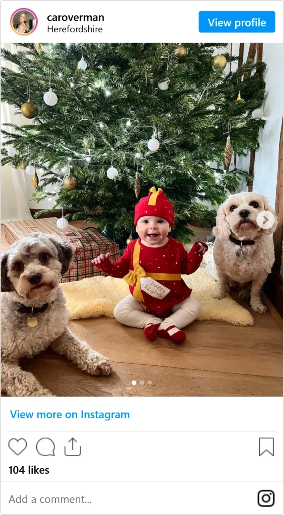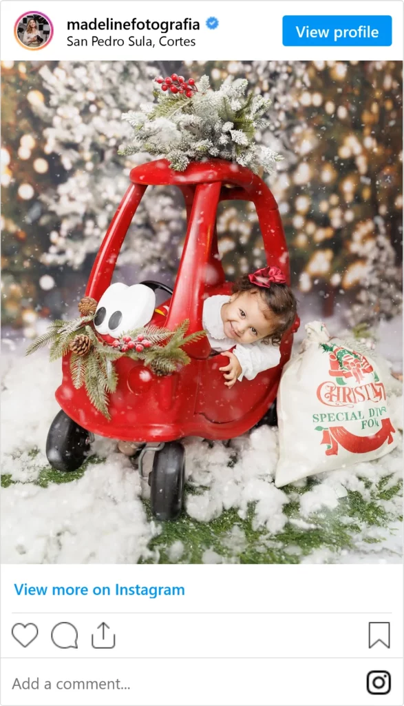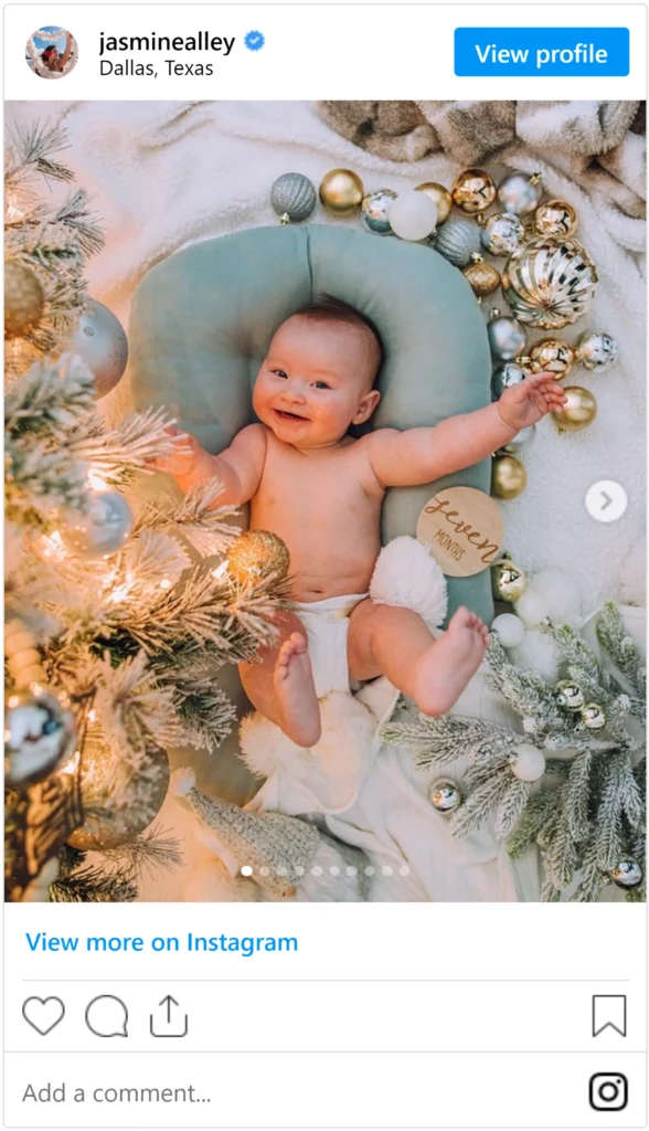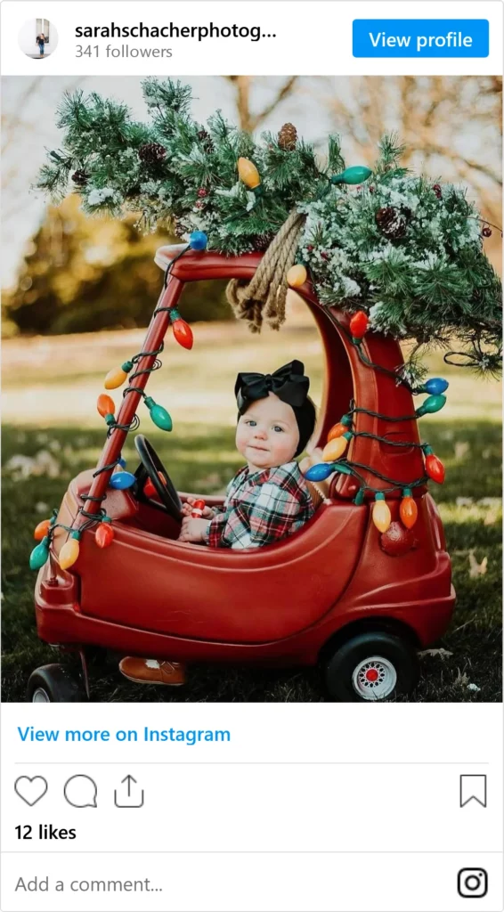 A milestone Christmas photo is a great way to capture how much your baby’s grown while adding a bit of holiday fun to their first Christmas.