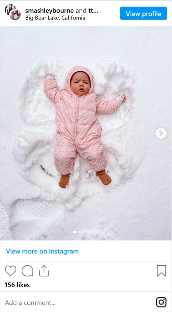 If you’re someplace with snow, you can lay your baby down and help them create a snow angel! Just make sure they are protected from the cold!